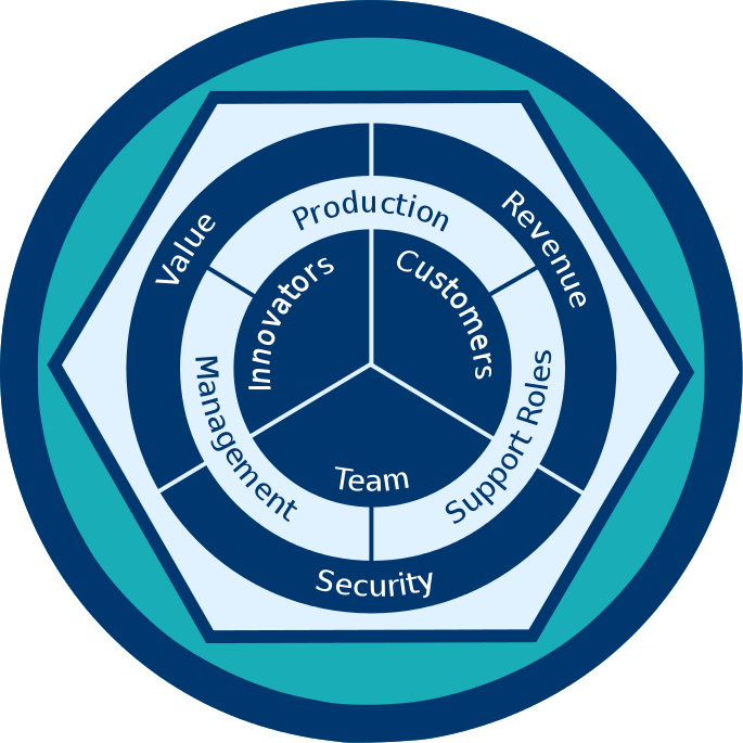 Inside productive activity are three critical groups. These are the team, innovators and customers. Each has an important role to play if productive activity is to achieve its purpose.